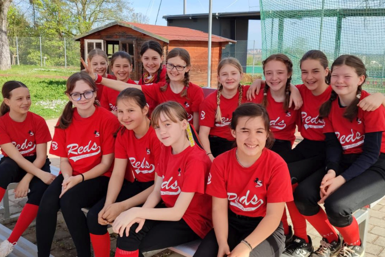 Am 06.04.2024 bei schönstem Sonnenschein ist unsere frischgebackene U16-Mannschaft in ihr erstes Doubleheader-Spiel im Ligabetrieb zu Hause gestartet. Die Reds sind in dieser Saison mit einem sehr jungen Team mit einem Durchschnittsalter von 12 Jahren am Start. Bis auf zwei verletzungsbedingte Ausfälle von Marie Schuttenberg und Sarah Edle von der Planitz spielte das komplette Team mit 13 Mädchen.